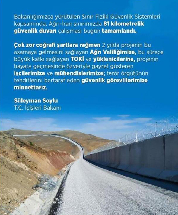 N.DOĞUŞ İNŞAAT LTD.ŞTİ. AĞRI İLİ HUDUT HATTINA 3. ETAP ACİL SINIR FİZİKİ GÜVENLİK SİSTEMİ YAPIM İNŞAATI İKMAL İŞİ